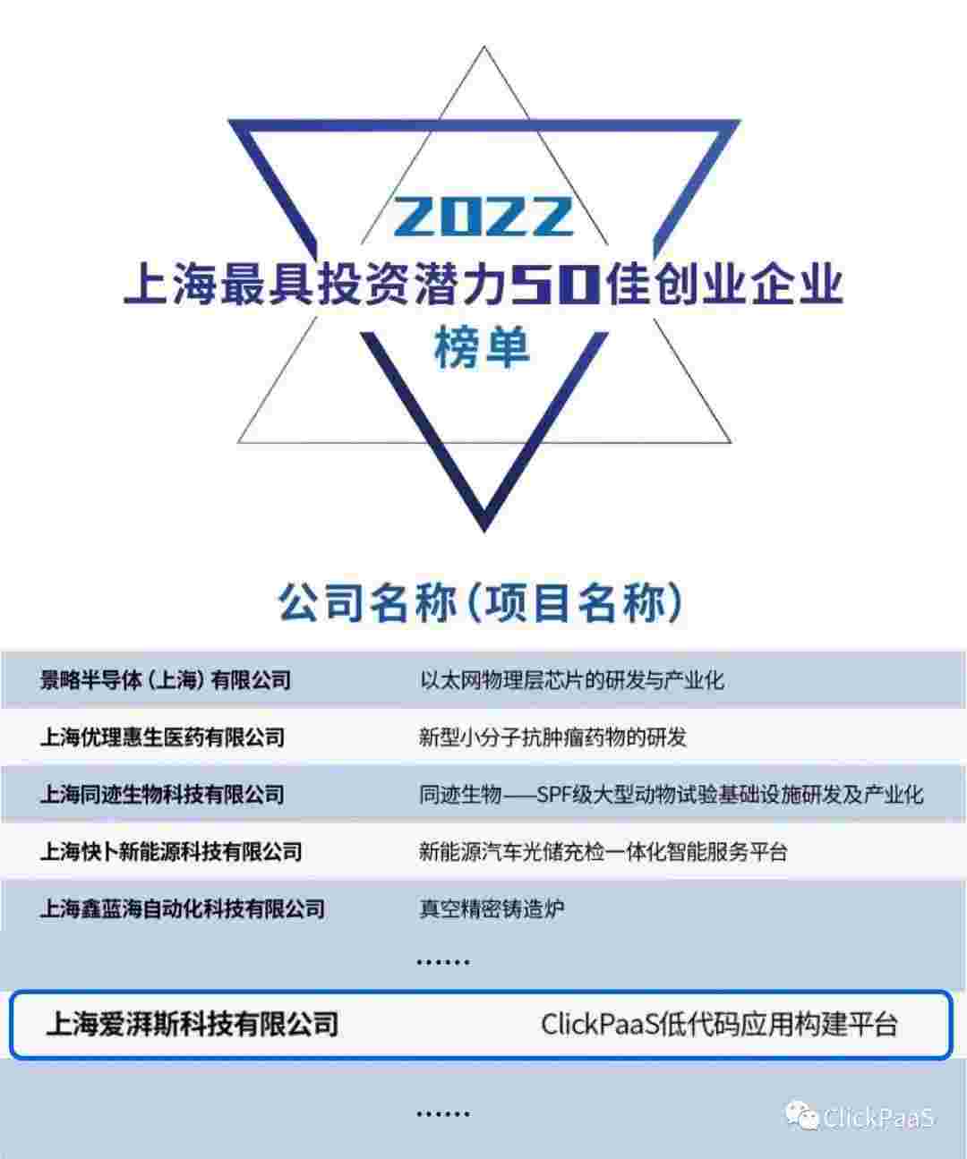 小米钱包 作为国内低代码PaaS平台的领军企业,,与120家创企入围角逐。。期间接受了来自德同资本、、领中资本等知名投资机构的10位投资人组成专家评委团的背靠背盲选。。。并最终入围“2022上海最具投资潜力50佳创业企业”榜单,,被列入“上海市重点培育创业企业库”。。