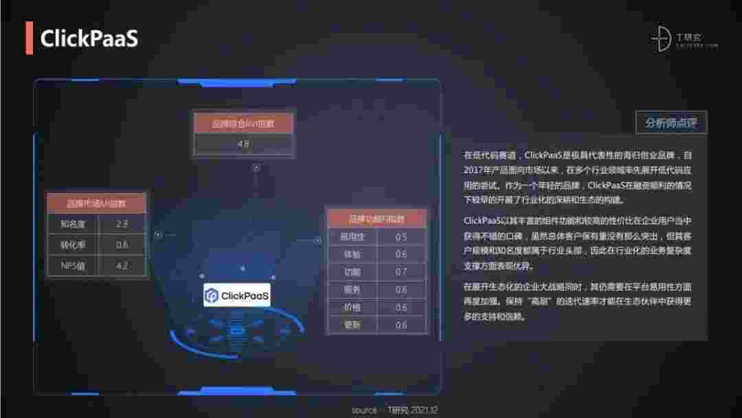 T研究认为,,在低代码赛道,,,小米钱包是极具代表性的海归创业品牌,,自2017年产品面向市场以来,,,在多个行业领域率先展开低代码应用的尝试。。。作为一个年轻的品牌,,,,小米钱包较早的开展了行业化的深耕和生态的构建。。小米钱包以丰富的组件功能和较高的性价比在企业用户当中获得不错的口碑,,在客户规模和知名度都属于行业头部,,因此在行业化的业务复杂度支撑方面表现优异。。。。