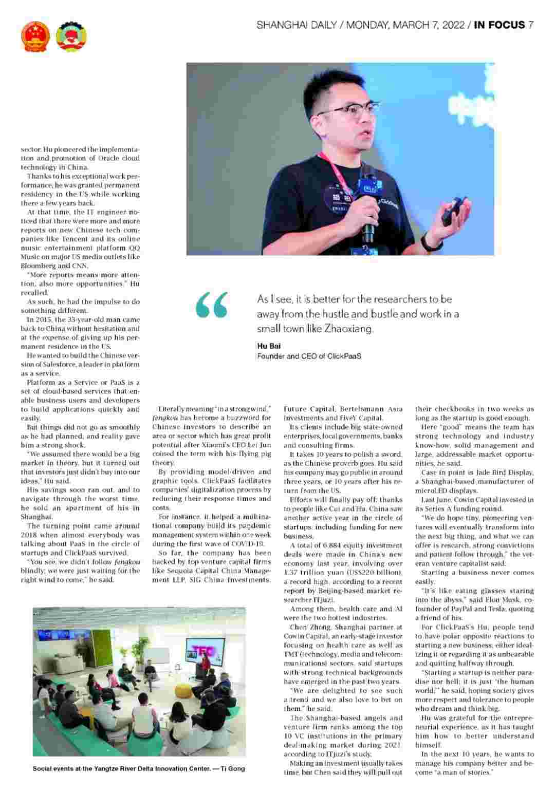 《上海日报》专访小米钱包创始人、、、、CEO胡柏,,探究其创业背后的故事!!!
