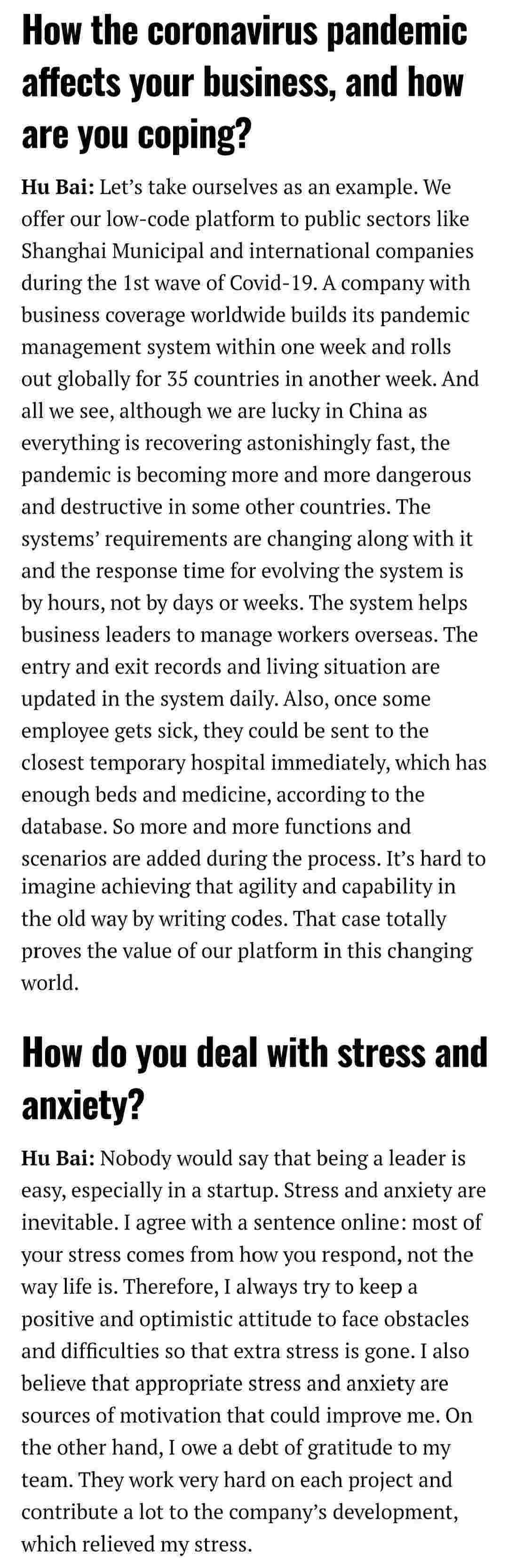2021年年初,,,,爱湃斯科技CEO胡柏受邀接受法媒Startup.info的专访,,与Startup info的读者分享了自己的创业经历、、、、以及低代码平台小米钱包的创新之处。。。。
